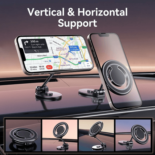 The Foldable Magsafe Magnetic Car Phone Mount is the ultimate solution for hands-free navigation and safety. Its dual-axis folding design provides unprecedented flexibility, transforming from a compact, low-profile mount into an extended arm for optimal viewing. Whether you prefer vertical or horizontal orientation, the 360° rotating base and 180° adjustable hinges ensure your phone is always at the perfect angle.