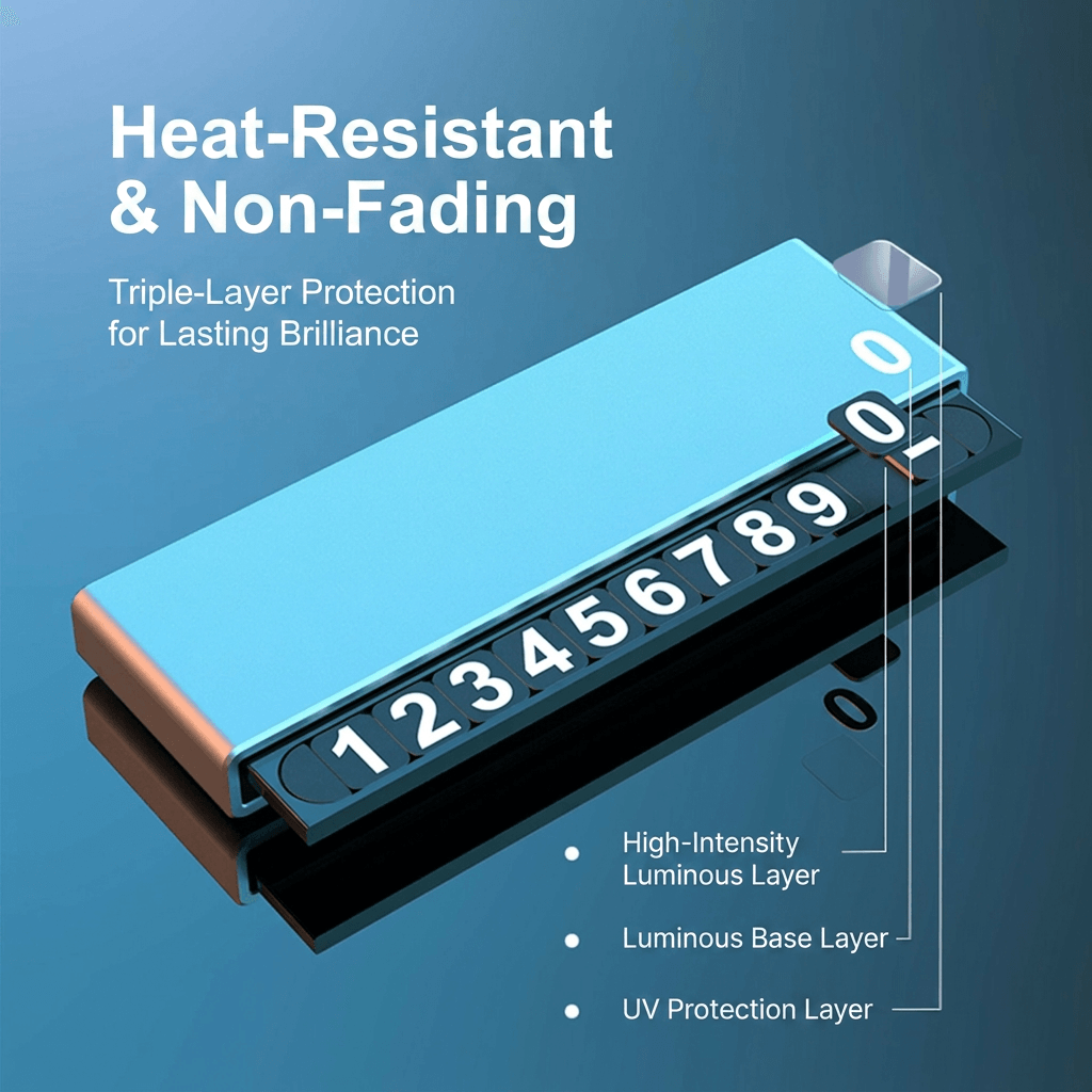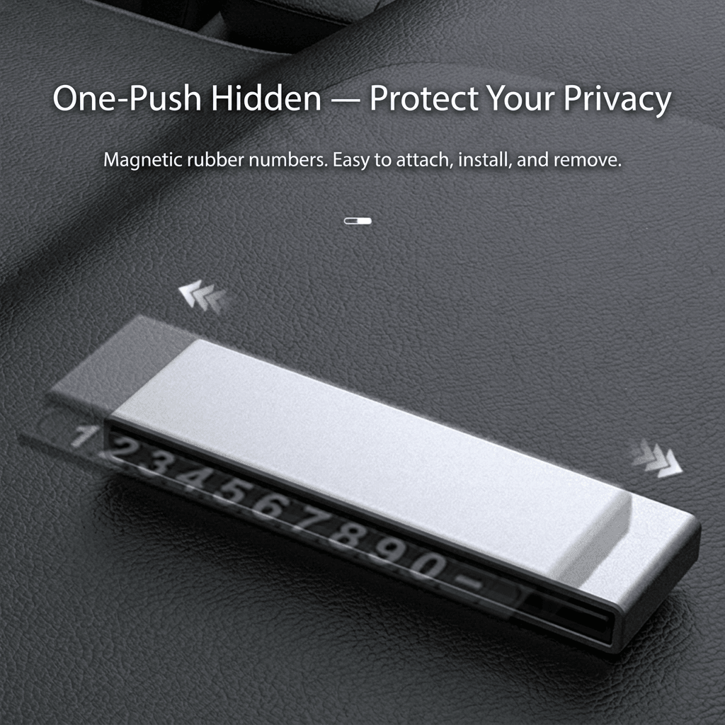 Enhance your vehicle's dashboard with our Premium Universal Aluminum Alloy Car Parking Number Plate. This sleek, minimalist accessory is designed for the modern driver who values both convenience and privacy. Crafted from high-grade, heat-resistant aluminum alloy, it features a unique one-push hidden design that allows you to conceal your phone number with a single touch when not in use. The high-intensity luminous numbers ensure your contact information is clearly visible even in low-light conditions, while the UV-protective coating prevents fading under intense sunlight. With its compact, low-profile silhouette and sophisticated matte finish, this parking plate provides a seamless, high-end look for any car interior.