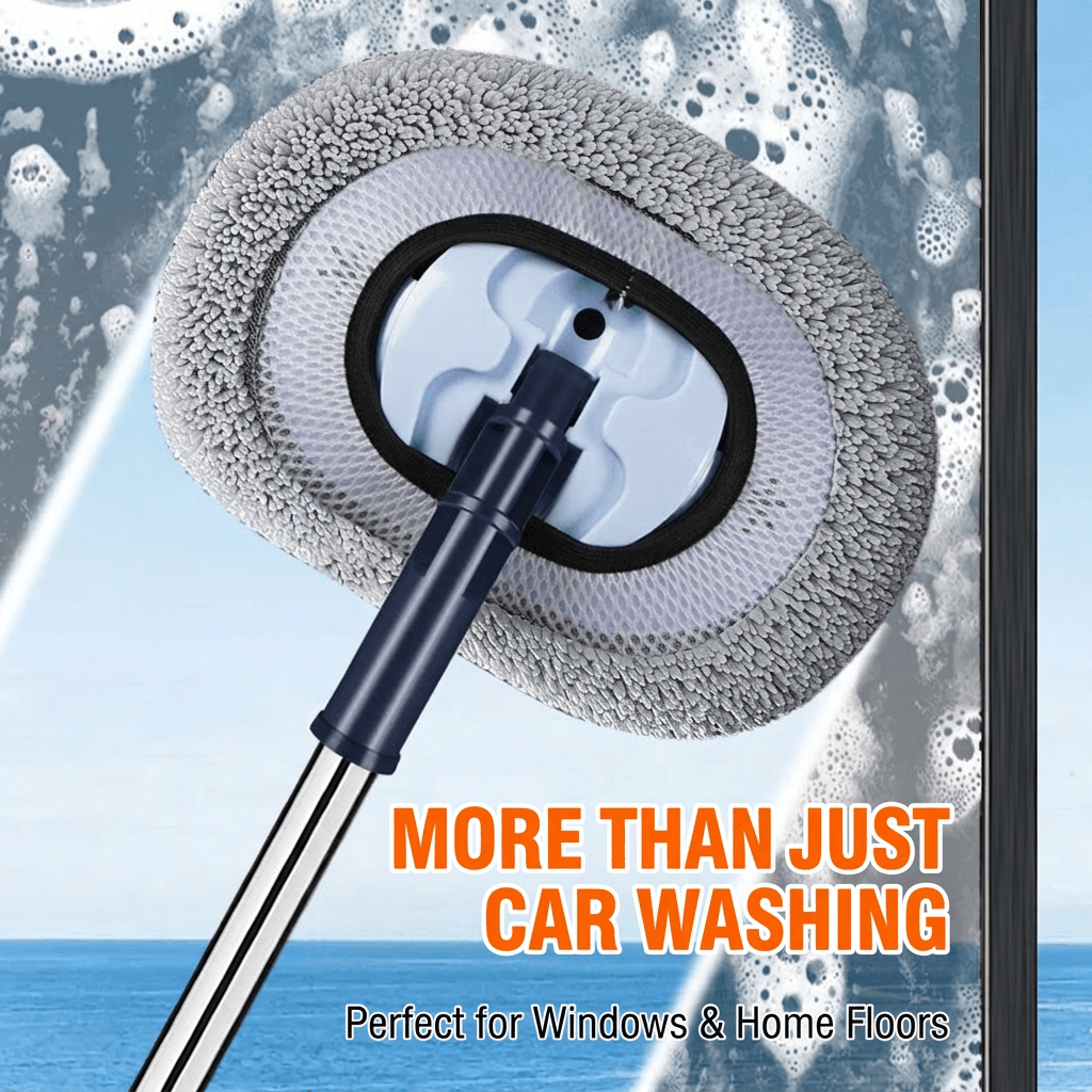 Universal Retractable Car Wash Mop — 150cm Extended Curved Rod & 180° Rotating Head (1Mop+2Pads)