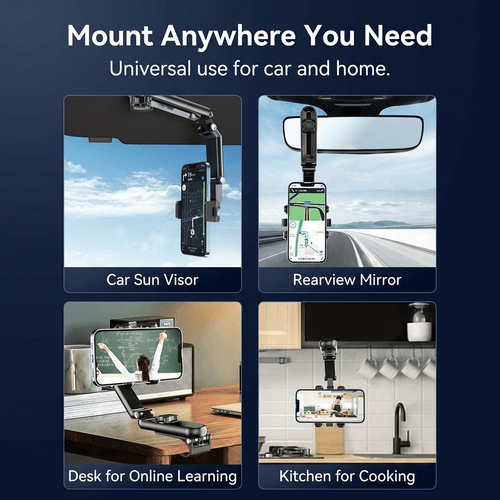 The Universal Sun Visor Car Phone Holder is designed to bring your navigation and entertainment to eye level, ensuring maximum safety while driving. Featuring a 2026 premium upgrade, this mount utilizes a turbo press system for an auto-locking, secure fit. Its versatile design isn't limited to the car; use it on your rearview mirror, desk, or even in the kitchen. The sleek, silent operation and high-strength electroplated clip make it a durable and high-end addition to any vehicle.