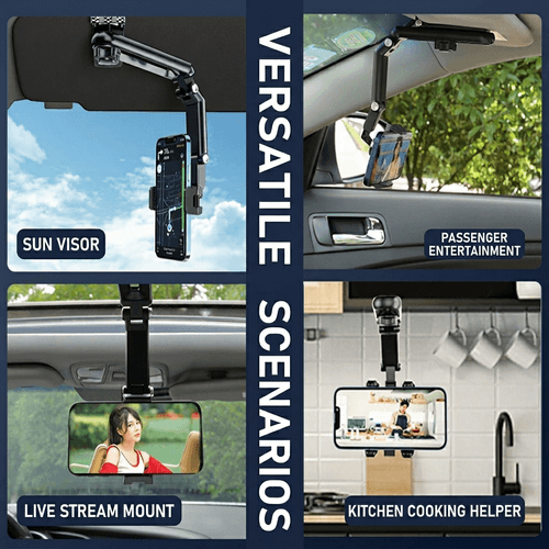 Elevate your driving experience with our Premium Universal Sun Visor Car Phone Holder. Engineered for both safety and convenience, this mount features a sophisticated 1080° rotation system and a dual-axis 180° adjustment, allowing you to find the perfect viewing angle without ever taking your eyes off the road. The upgraded non-slip alligator clip, reinforced with silicone padding, ensures a rock-solid grip on your sun visor, even on the most rugged terrains. Designed with a silent, noiseless mechanism and a one-touch lock system, it provides a seamless, distraction-free journey. Whether for navigation, hands-free calls, or passenger entertainment, this versatile mount is the ultimate companion for every modern driver.
